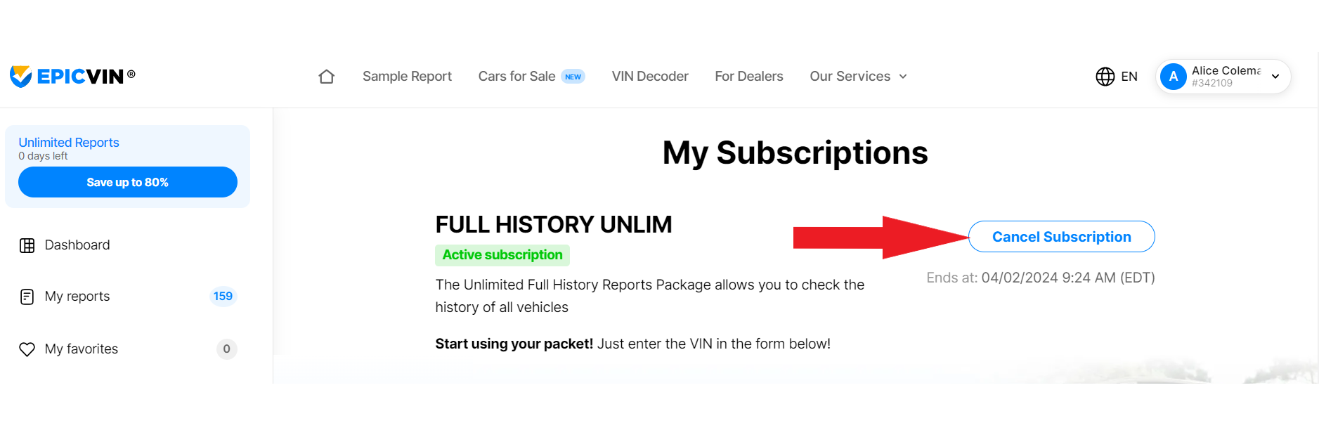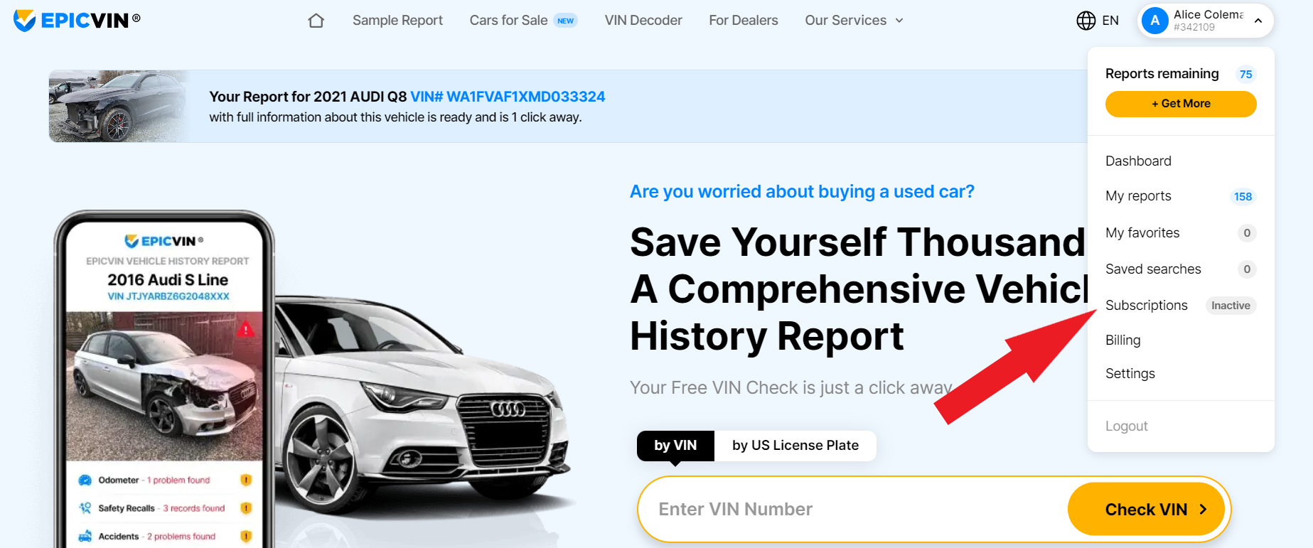 - Log in to your EpicVIN account.
