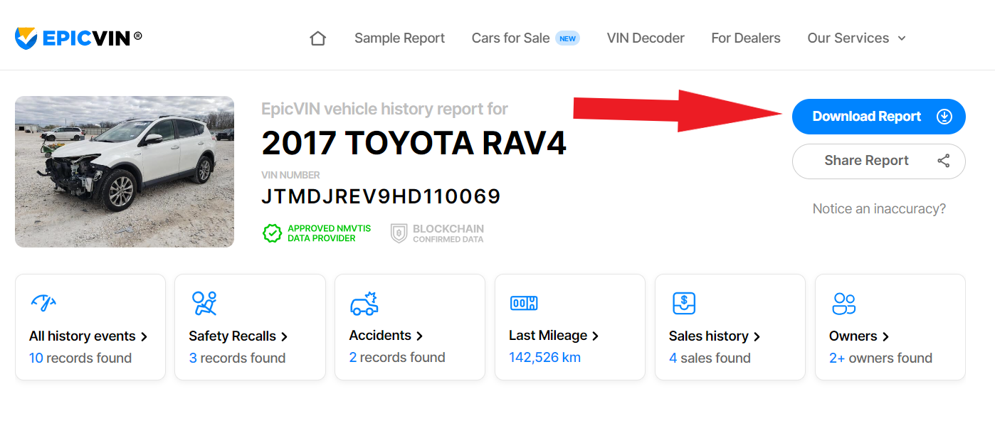 Another way to download a PDF is to go to the My Reports page in your account and press the PDF button next to the View button: